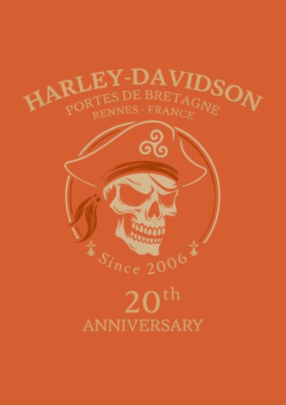 Tee-shirt "Shovelhead" en édition limitée pour les 20 ans de la concession Harley-Davidson Portes de Bretagne. Retrouvez un backprint exclusif, inspiré de notre corsaire.